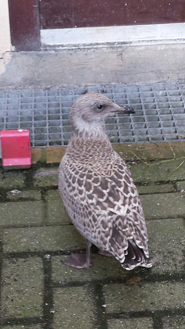 Ich kann die Jungmöwe ja verstehen: Mülltonnen, Schatten, schön kühl… So ein Möwenjunges ist aber auch gut als Wachhundalternative, die verscheut auch alles und jeden mit Leichtigkeit. So ein Schnabel und das Gezetter ist schon ganz ordentlich.