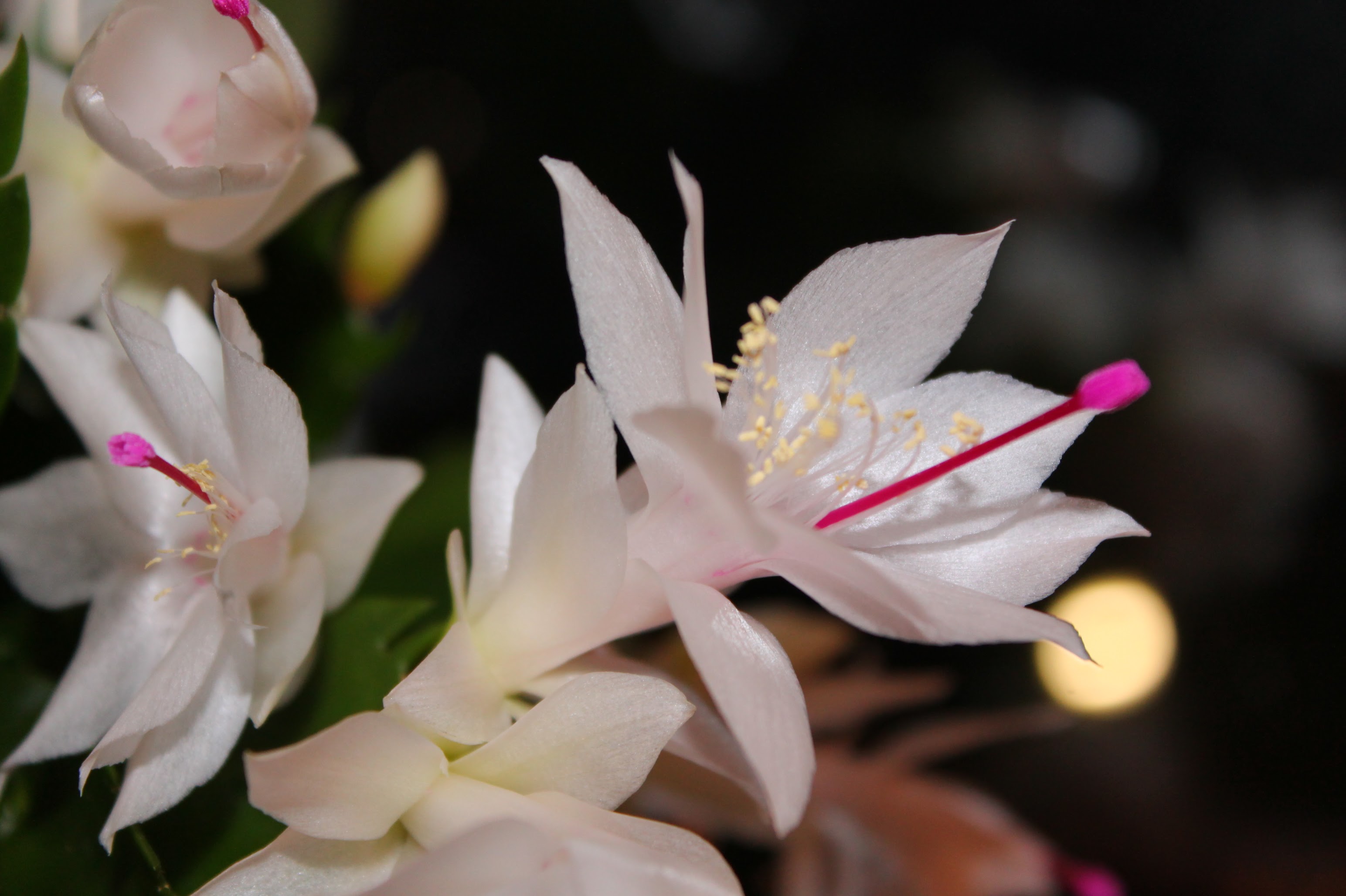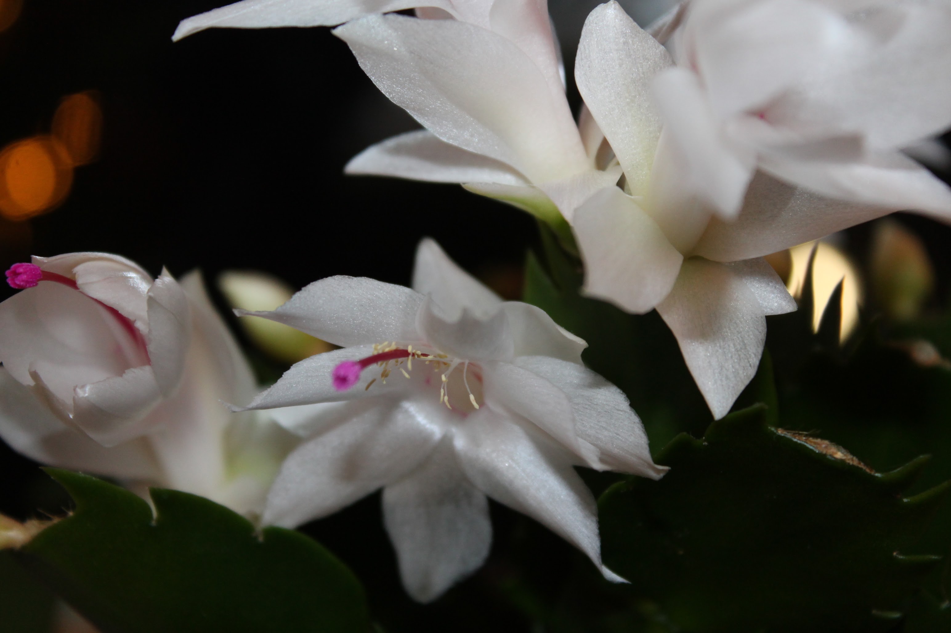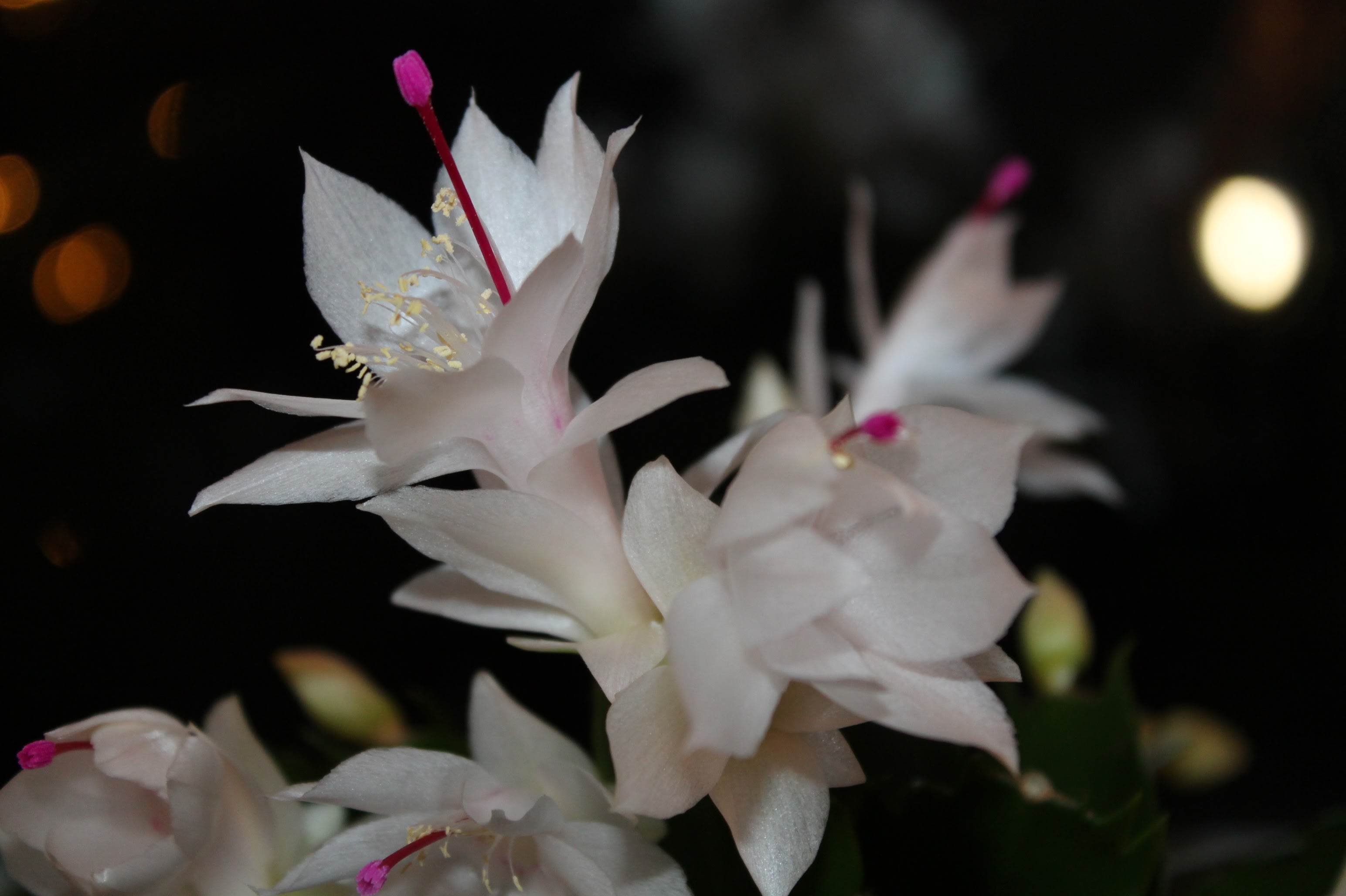 Weihnachtskakteen verbinde ich immer mit meiner Großmutter mütterlicherseits. In der Veranda wuchsen bei meiner Oma immer zahl- und artenreiche Exemplare in herrlicher Pracht. Jedes Jahr zum Weihnachtsfeste pünktlich blühen alle gemeinsam um die Wette. Daher bin ich auch froh das unser Exemplar zu Hause auch so schön blüht, wie in der Heimat. Regelmäßig dafür aber nur schlückchenweise gießen hat Oma immer gesagt. Daran versuche ich mich zu halten.