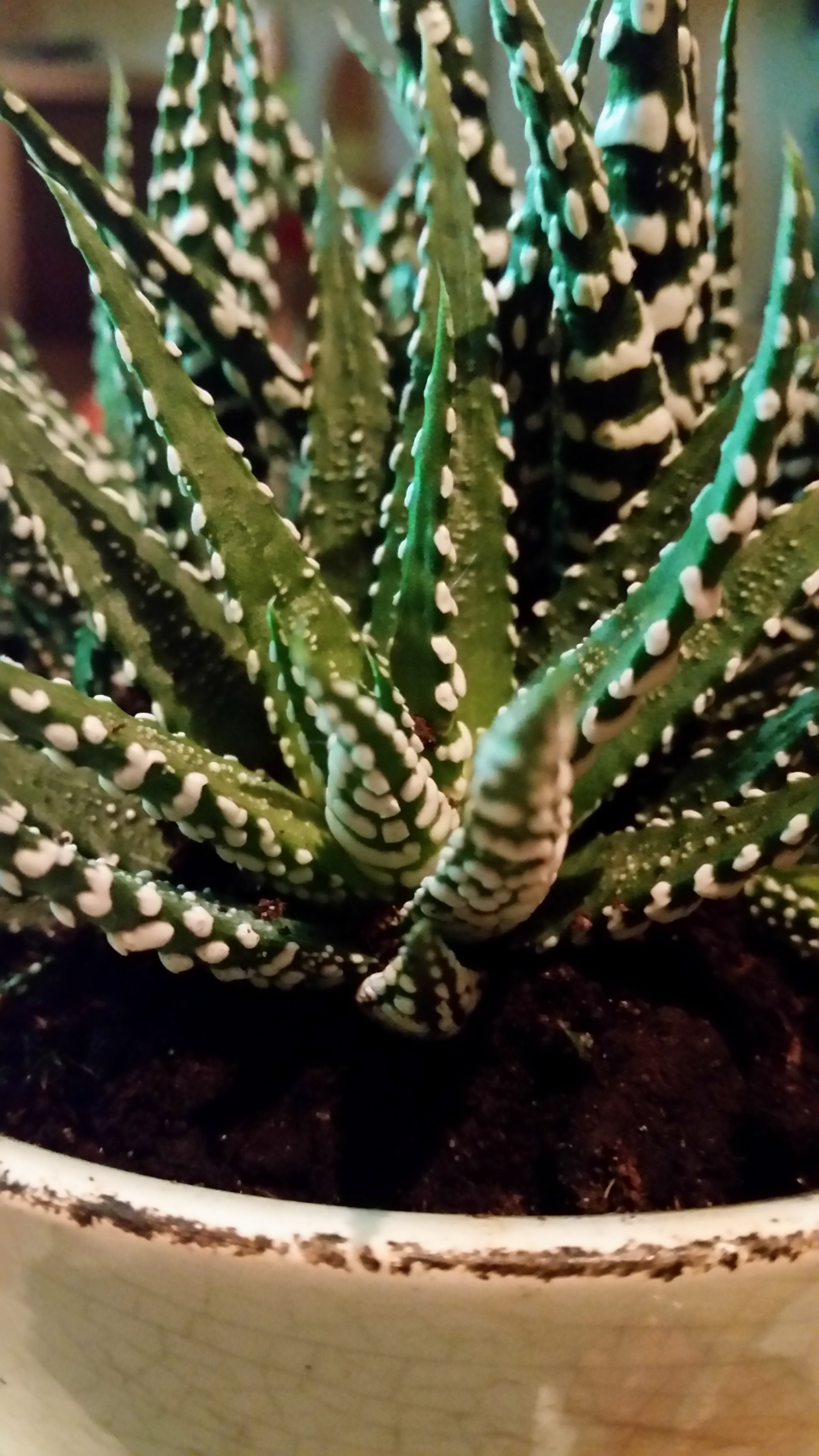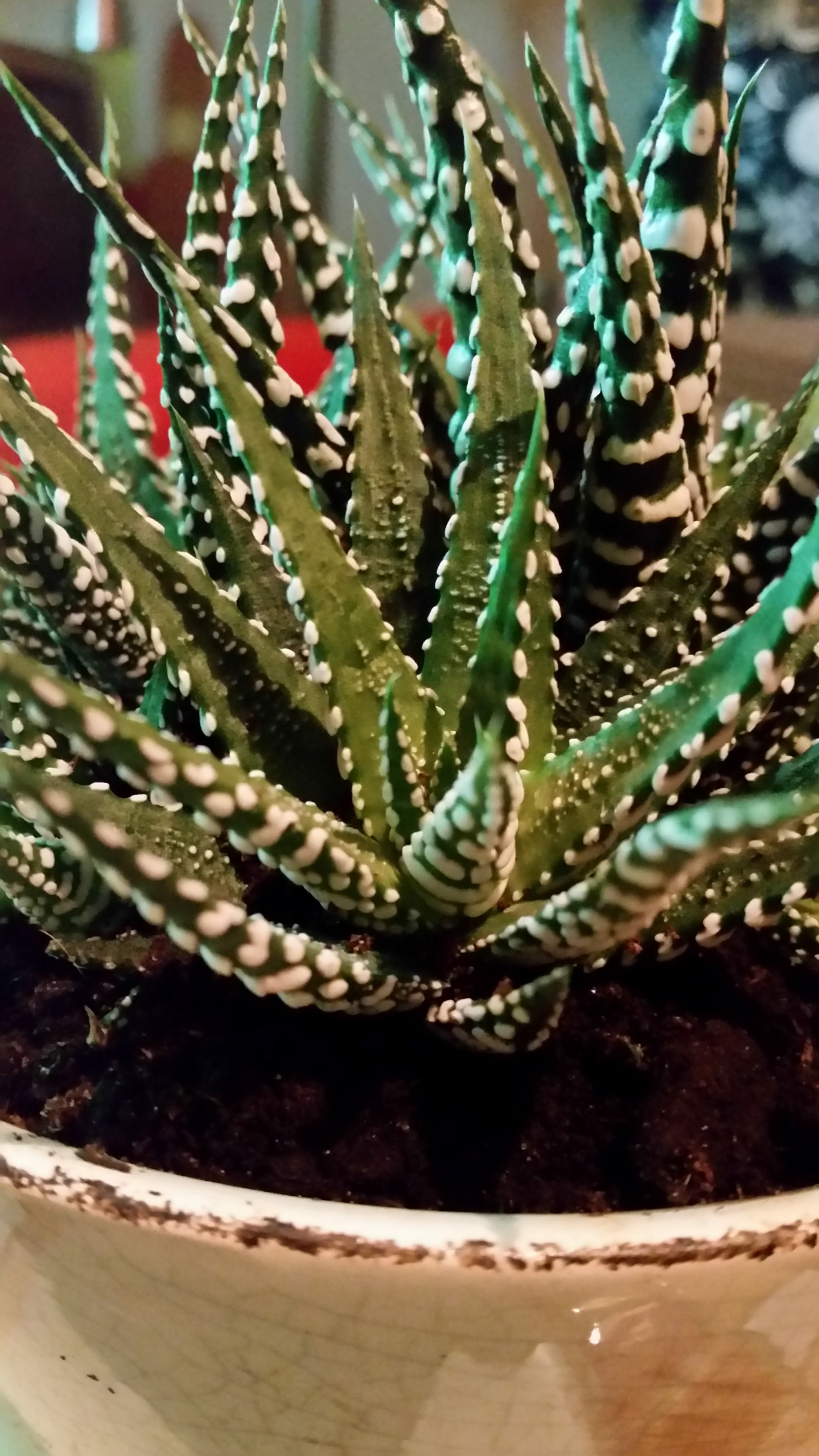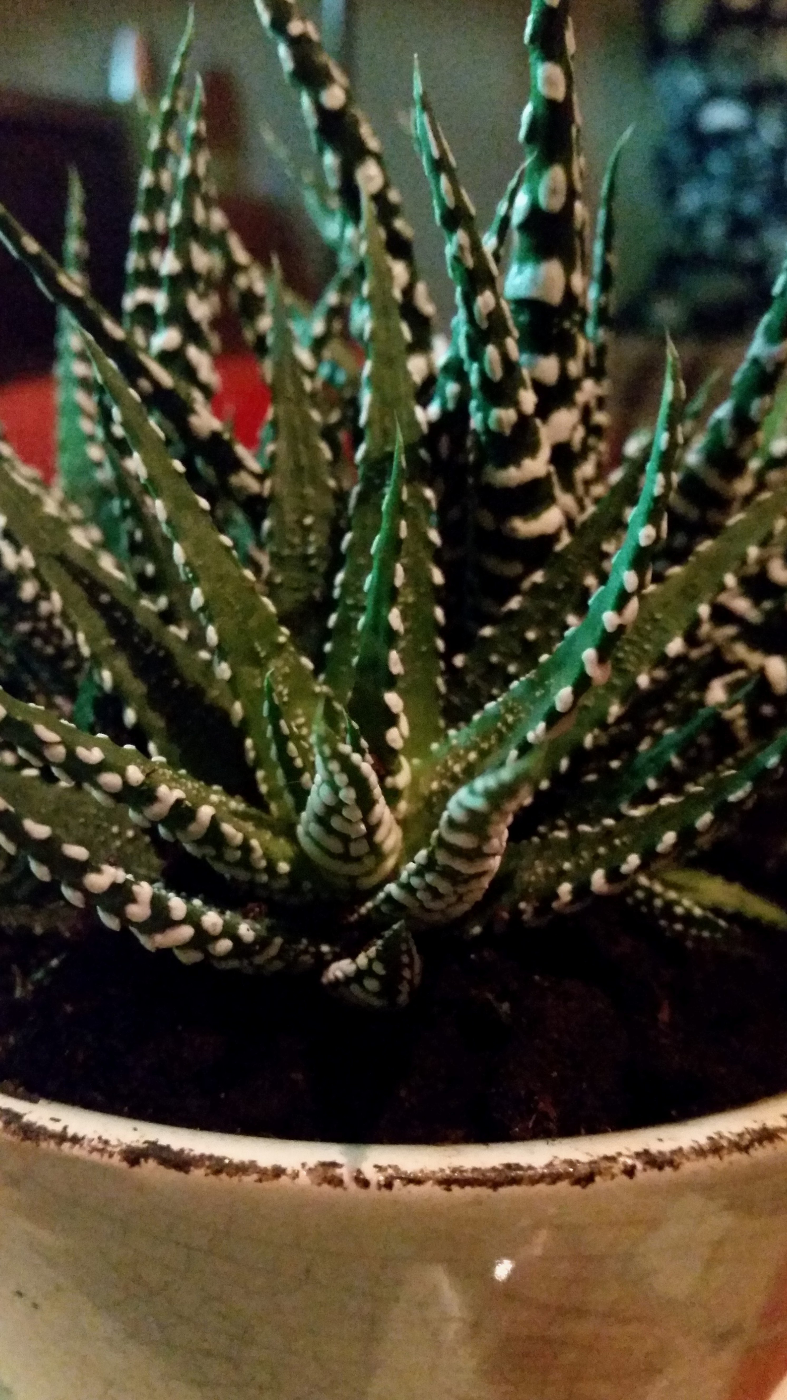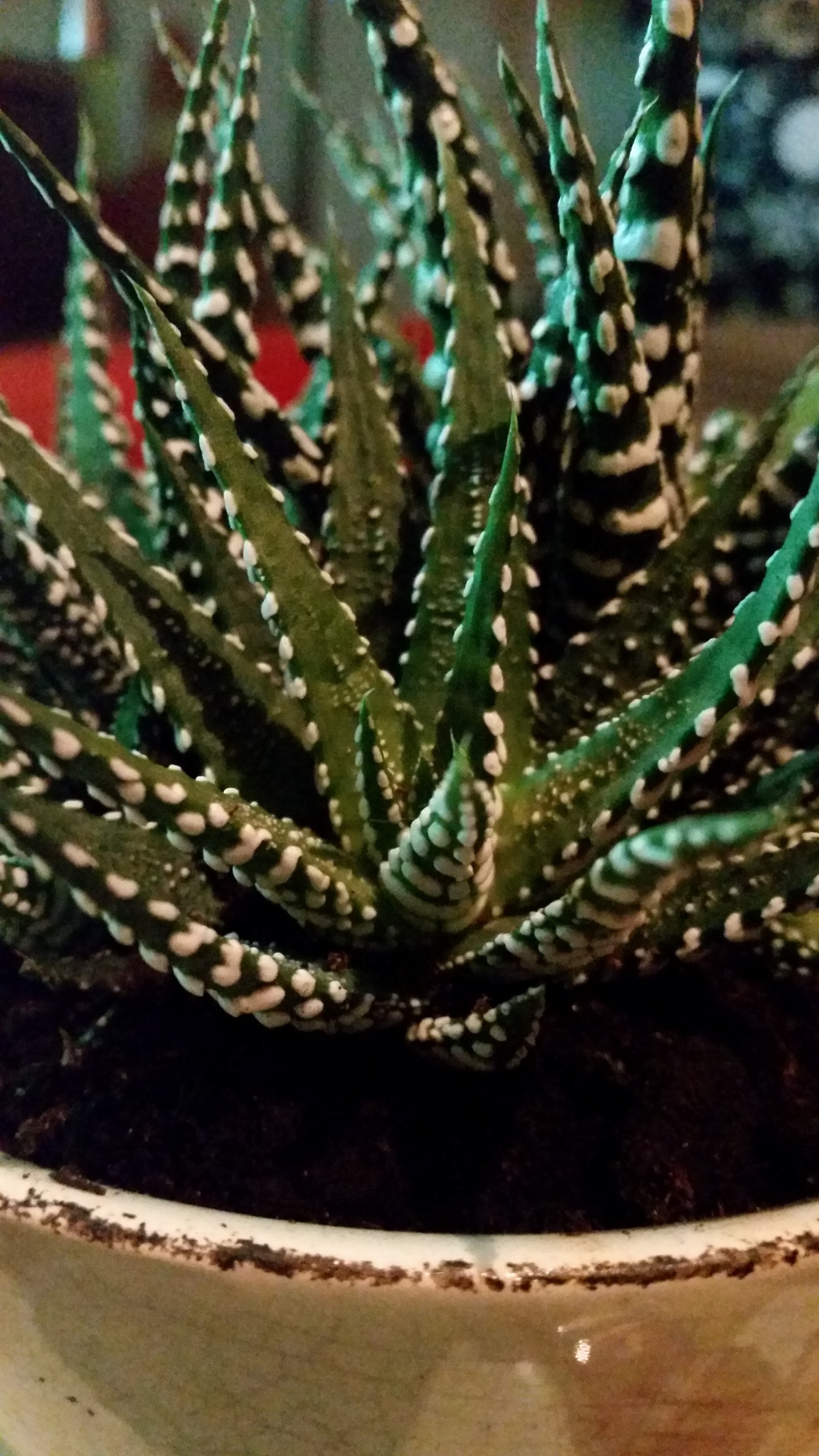 Für die regelmäßigen Leser meines Bloges unter euch dürfte klar sein: Ich habe einen Faible für Sukkulenten! Heute habe ich eine neue Pflanze geschenkt bekommen. Nach meiner Einschätzung dürfte es sich um meine zweite Haworthia handeln. Genauer gesagt vermutlich eine Haworthia margaritifera. Diese Art trägt zahlreiche weitere Synonyme.