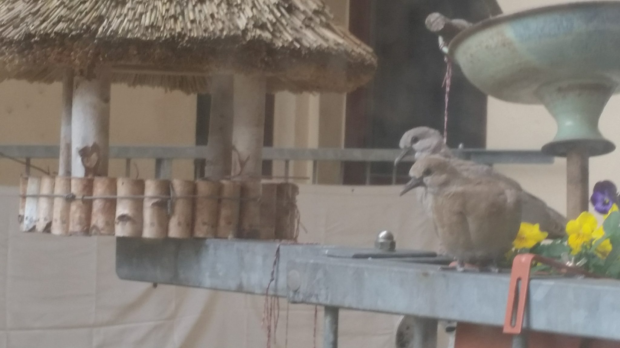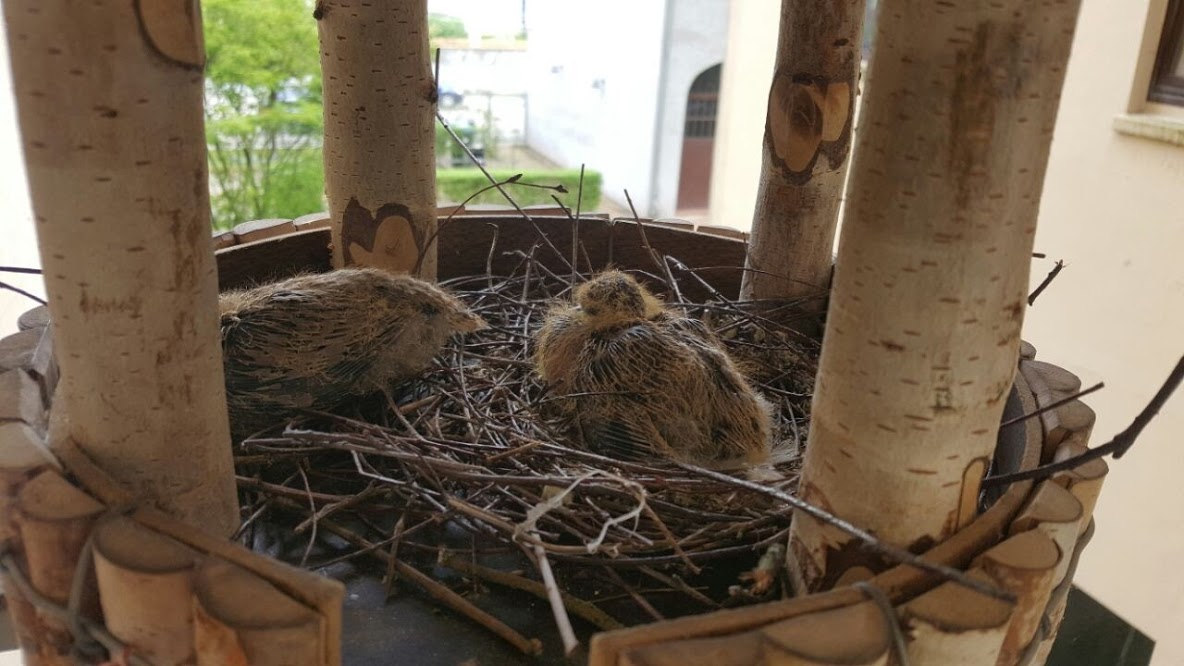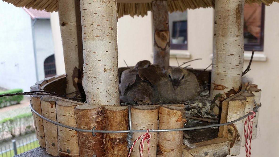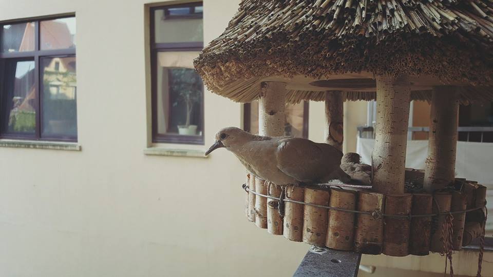 Also von Anfang an. Unser Balkon ist eine kleine Oase, immer bunt bepflanzt von Blumen, über Kräuter bis hin zu Erdbeeren. Alles was man auf einem Balkon haben kann, haben wir so fast. Natürlich darf im Winter kein Vogelhaus zum Füttern fehlen. Blöd nur, wenn man im Frühling auf Grund des bescheidenen Wetters vergisst es abzubauen. Es hieß vom Hersteller immer da passen keine Tauben rein. (Praxistest nicht bestanden, würde ich sagen.)
