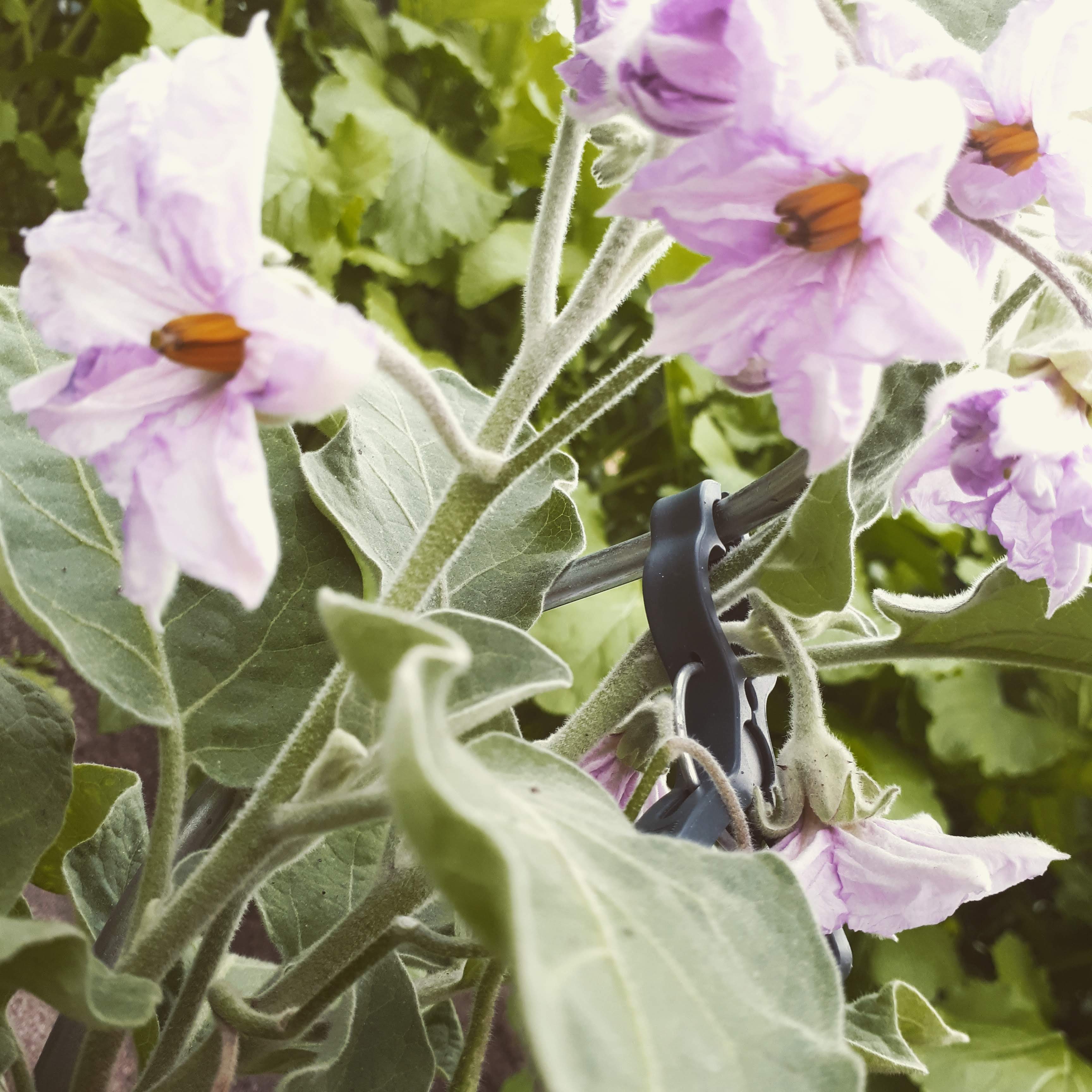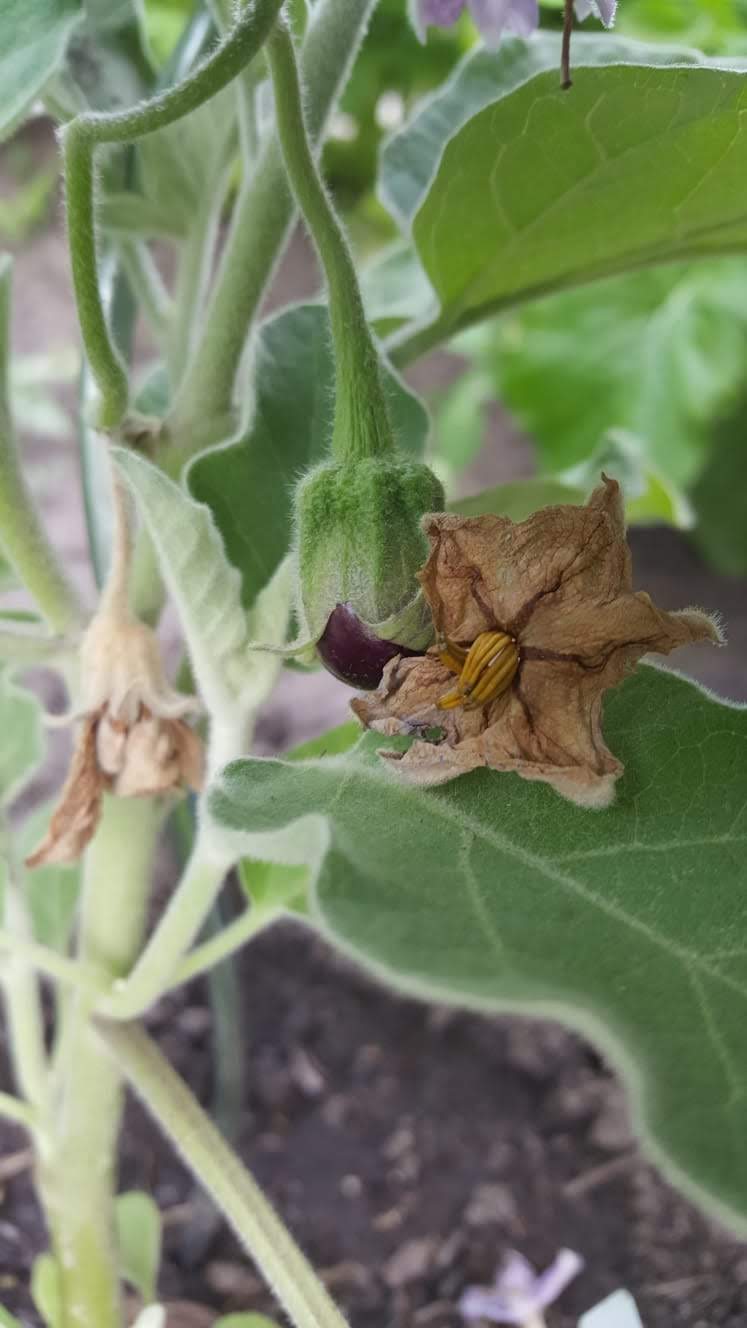 Neu hinzugekommen ist eine Mini- Aubergine. Durch das warme Wetter haben viele Gartencenter im Juni noch Gartenpflanzen im Angebot. Ob die Aubergine Früchte bringen wird, bleibt abzuwarten. Ein Fruchtansatz ist bereits zu erkennen.